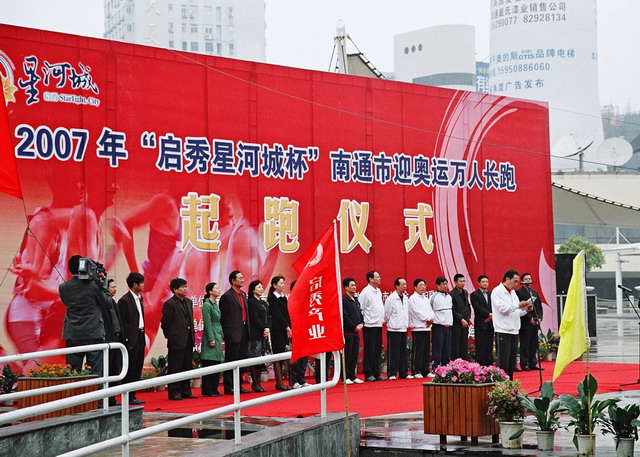 2007年4月22日,天星湖中学高一年级全体学生及高二年级两个班的共五百余名学生,代表南通经济技术开发区参加了2007年“启秀星河城杯”南通市迎奥运万人长跑。校长曹钤、副校长唐进华陪同全体学生跑完全程。