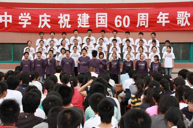 由政教处、团委联合筹办,经过班级学唱、年级选拔、学校决赛等多个环节,我校“庆祝祖国六十周年歌咏比赛”于928日正式举行。