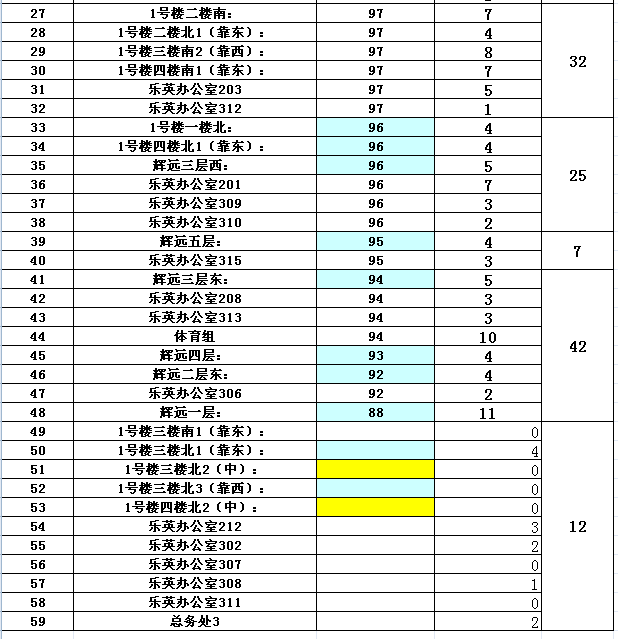 6日中午12:00,学校检查组一行7人在蒋子平副校长的带领下, 对致远楼、明远楼、辉远楼、乐英楼等办公室进行了文明创建大检查,本着“公平、公正、公开”的原则,本次的评委全部由学校文明监督岗的学生组成,以“卫生整洁、安全绿色节能”的两大模块十项评分点为标准进行量化打分,评委们通过将近1个小时工作,对全校大大小小59个办公室进行了认真仔细的检查。