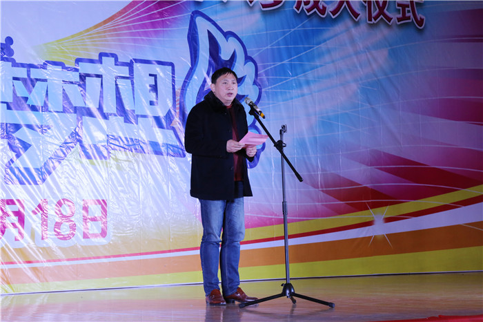 仪式上开发区新开镇团工委姜来明书记给新公民们送来了精神食粮,新开派出所丁海波副所长、学校徐新民校长都饱含深情地给在场的学生送上真诚的祝福和拳拳的鞭策;学生们的诗朗诵《我十八岁了》誓言铮铮、激情澎湃,道出了天中学子的豪情万丈;之后所有高三学生在家长的引领下,迈着坚实的步伐、怀着激动的心情通过“成人门”,并从徐新民校长等领导手中接过成人徽章和《中华人民共和国宪法》单行本;随后全体高三学生在教务处赖军主任的带领下面对鲜艳的五星红旗进行了十八岁成人宣誓。学生代表俞尧、家长代表姚敏女士做了发言,表达了对领导和老师的感激之情。
