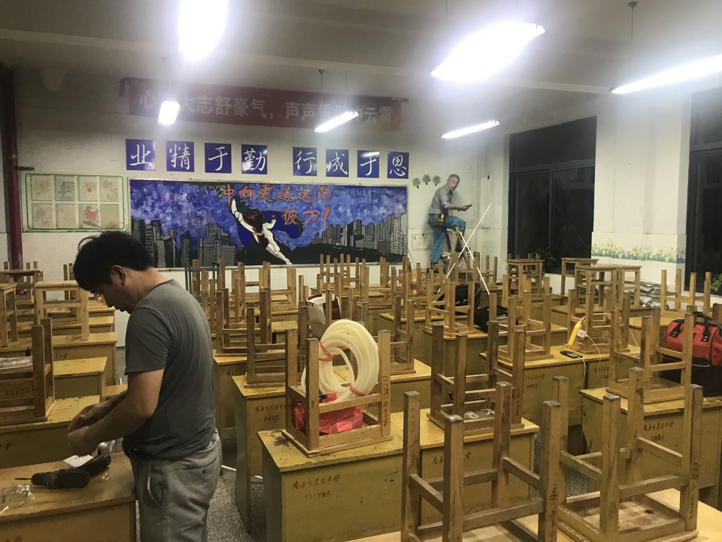 根据上级教育行政部门的布署,本学期将于7月17日结束。结合这段时间的气温情况,我校未雨绸缪,立即启动防暑紧急预案。除了对所有办公室、教室进行空调检修外,还在每个教室安装4个摇头壁扇。这样既达到防暑降温的目的,又满足教室防疫通风的要求。为了不影响学生上课,工人师傅克服困难,利用10个晚上在全校70个教室安装了280个电扇。