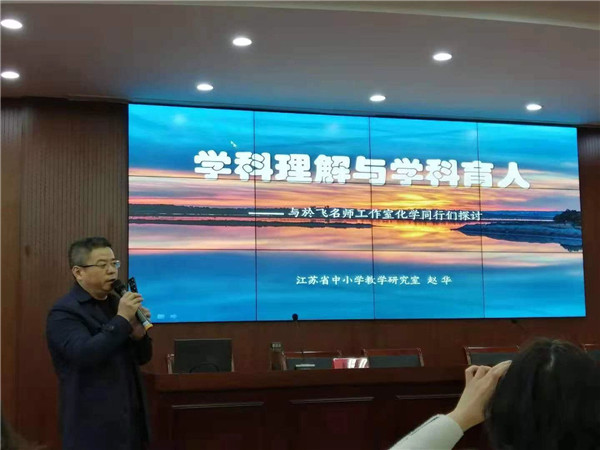 江苏省教研室化学教研员赵华教授给老师们带来了《学科理解与学科育人》的精彩讲座。赵教授告诉大家化学学科育人要做到尊重生命的无限可能,实现的三个途径是:无条件的爱、价值感与需要以及终生成长的需要。赵教授给了大家奋斗的目标,一要有课堂理解和试题研究的两把刷子;二是培养学术功底和学习能力;三要有教育情怀和德性思考。