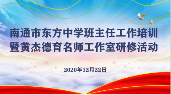 为更好地落实立德树人的工作目标,提升班主任学科育德的能力。2020年12月22日,东方中学班主任工作培训暨黄杰德育名师工作室研修活动在第二阶梯教室顺利举行。活动由政教处主任黄杰主持,学校全体班主任及工作室全体成员参加了活动。本次活动邀请了南通市教科院班主任教研员李屹老师作了精彩讲座。