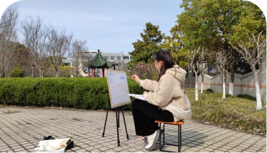 本次选拔赛共分为五个组别,分别是:素描静物组、国画创作组、设计组、色彩静物组、色彩风景组。3月23日下午,天朗气清,惠风和畅。前期通过作品筛选出来的五十余位学生在考务人员的带领下,分组来到校园内不同的景致前,进行同台竞技。