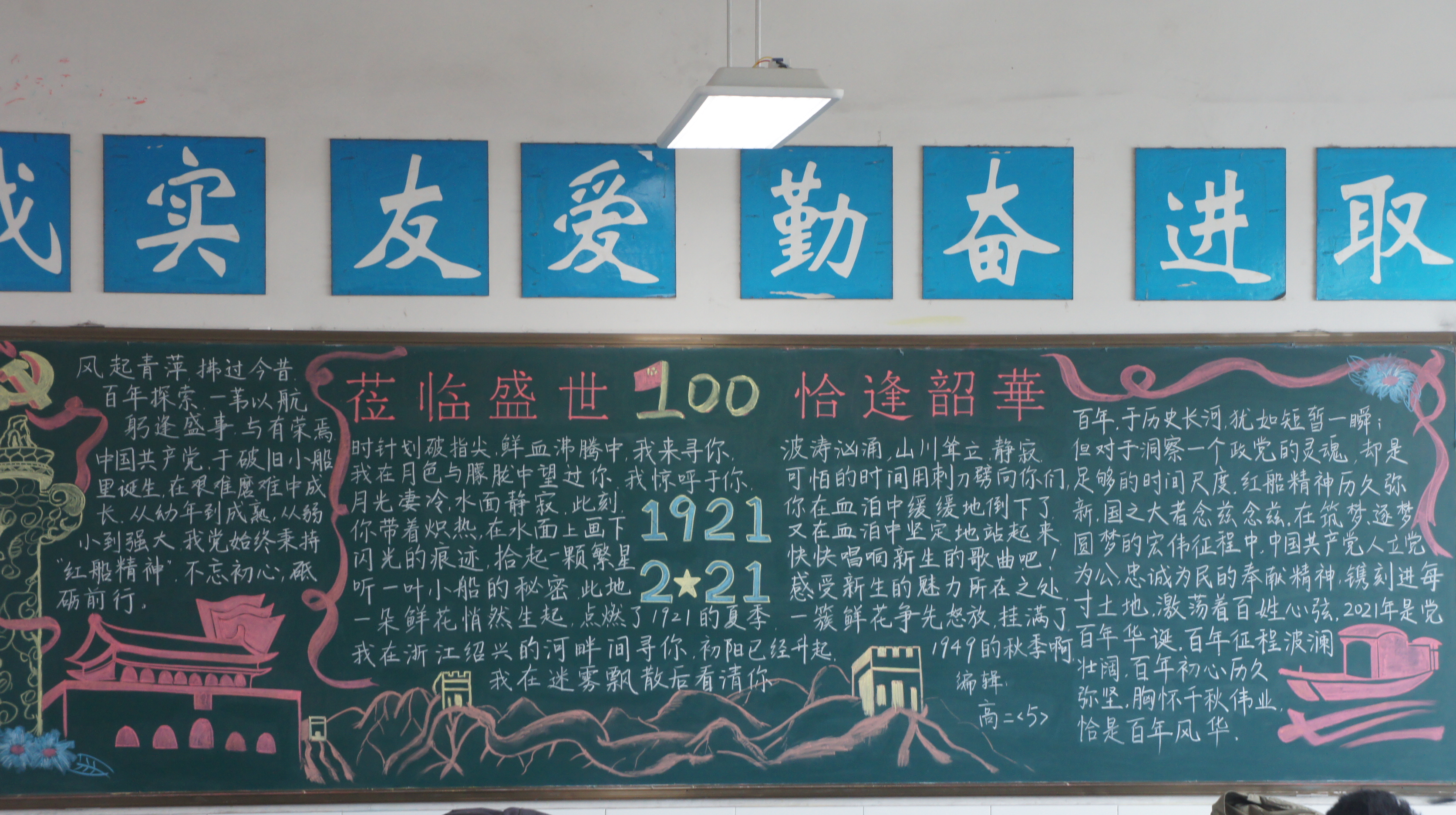 各班级的黑板报围绕主题精心设计,图文并茂。通过活动的开展,不仅教育引导全校学生学习党史,做到学史明理、学史增信、学史崇德、学史力行,更让学生在活动中坚定理想信念,升华爱国情怀,勇担历史使命。