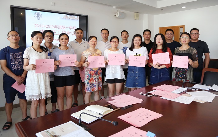 在会议正式开始之前,葛红军副校长宣布了上学期的优秀班级、文明班级、优秀班主任标兵、优秀班主任名单。并为全校新一届的班主任发放聘书。