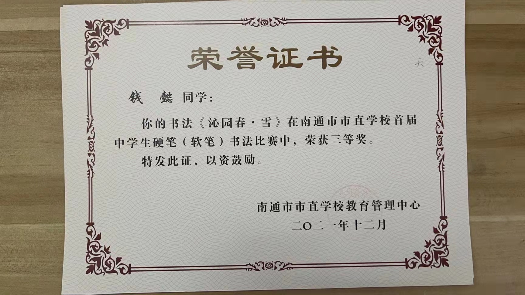 为进一步弘扬中华民族书法文化传统,丰富校园文化底蕴,提高学生写字水平,南通市市直学校教育管理中心举办了市直学校首届硬笔(软笔)书法比赛。