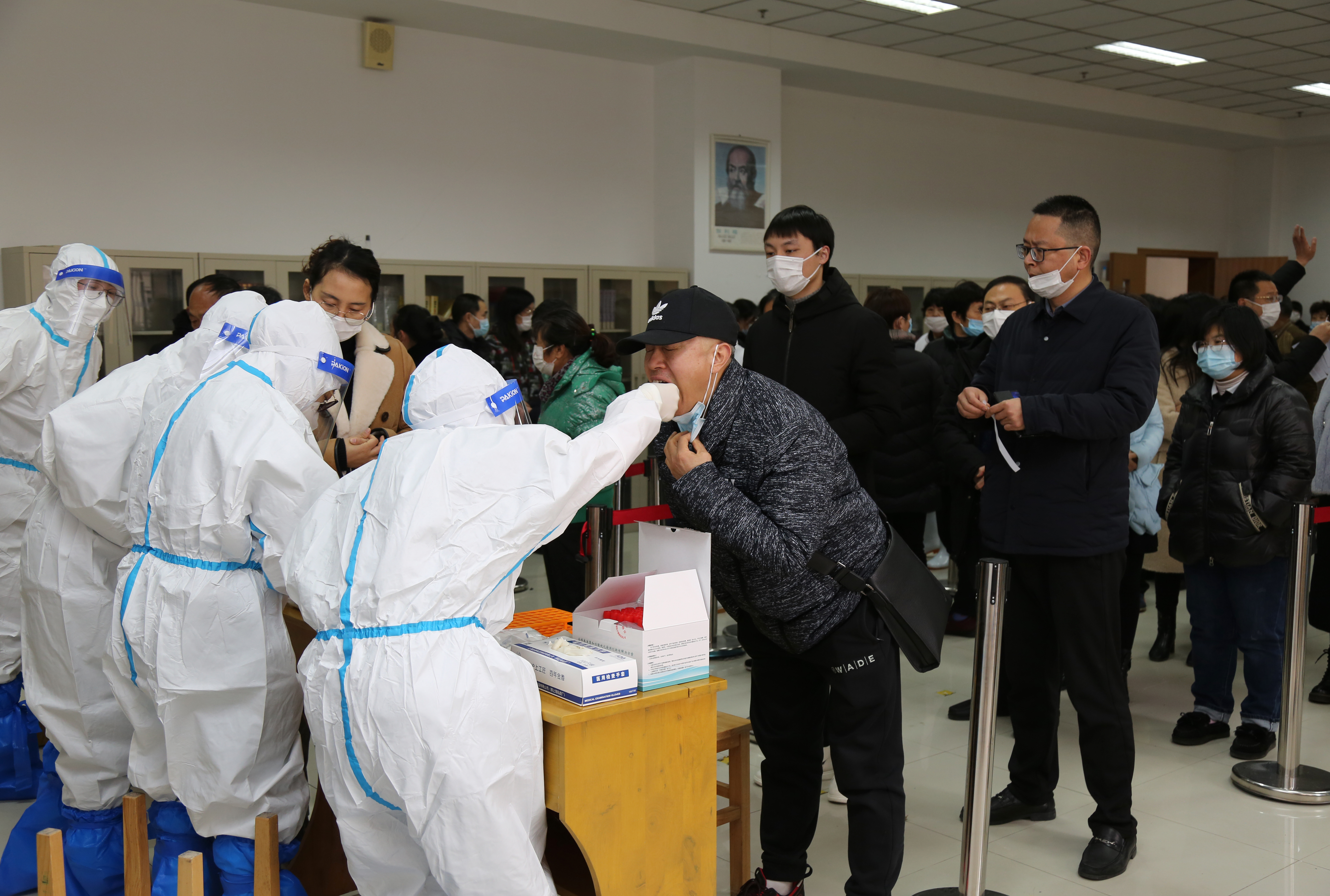 核酸检测采样工作于12:40正式开始,市肿瘤医院医务人员到校为师生进行咽拭子采样。所有待检人员严格遵守规定,佩戴口罩,保持安全距离,分批分组进行检测。医护人员按照规范流程操作,严格穿戴防护设备,避免交叉感染。现场秩序井然,师生分批次采样。等候采样的师生列队整齐有序,采样区医务人员迅速高效。学生处、后勤处、团委等处室工作人员以及志愿者协助本次核酸检测采样,全力配合医护人员工作。