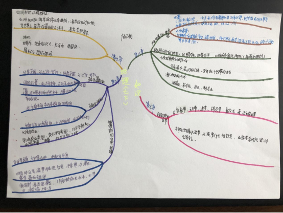 “小身材,大内涵。”一张思维导图可以将一节的知识浓缩在一张图中,结构清晰明了,我们通过思维导图完整地掌握该节的知识脉络,有效地进行知识的查漏补缺。学生通过颜色、形状、符号等多种形式来进行知识的展示和构建,记忆更加直观深刻,加深了对地理知识的理解和记忆。