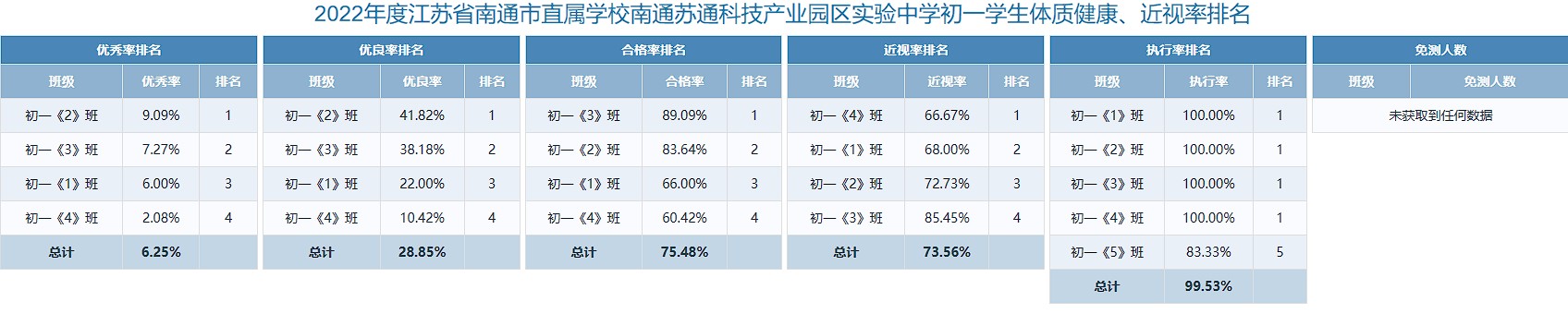 南通市苏锡通园区实验中学2022-2023学年学生体质健康监测度四率公示