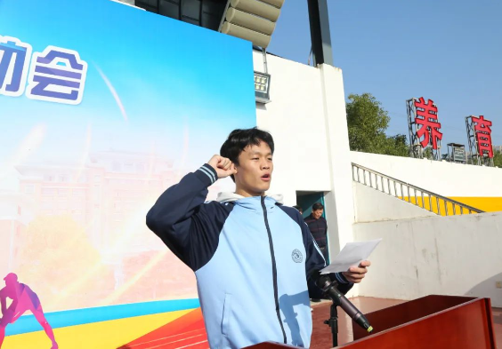 石子尧同学代表全体运动员宣誓。他们将秉承“友谊第一,比赛第二”原则,遵守运动员守则,服从裁判,公平竞争,积极进取,争创佳绩!