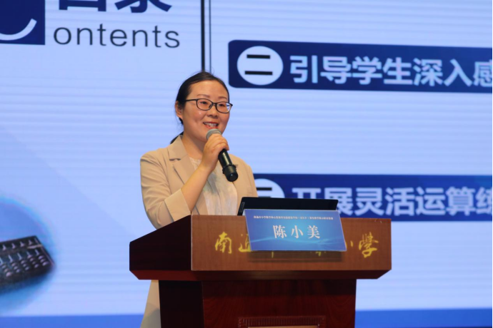 通州区石港小学许美玲老师作了《聚焦珠心算算理算法 构建高效学习新样态》的交流分享。许老师强调珠心算教学要注重算理算法融合,构建高效课堂。她提出在“四有课堂”中提质,以游戏化情境等激发学生探究,以“四拨融合”推动学生掌握珠心算技能,助力学生理解运算本质、提升迁移能力,实现数学学习的深刻变革。
