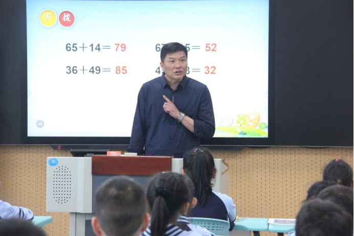 南通市小海小学姚佳欢老师执教《进位加(1)》。姚老师设计了魔法森林马拉松比赛的情境,从20以内进位加迁移到100以内进位加的拨珠方法,通过四拨练习强化了算理算法,富有趣味性和层次性的练习也让学生们的思维之花绽放。