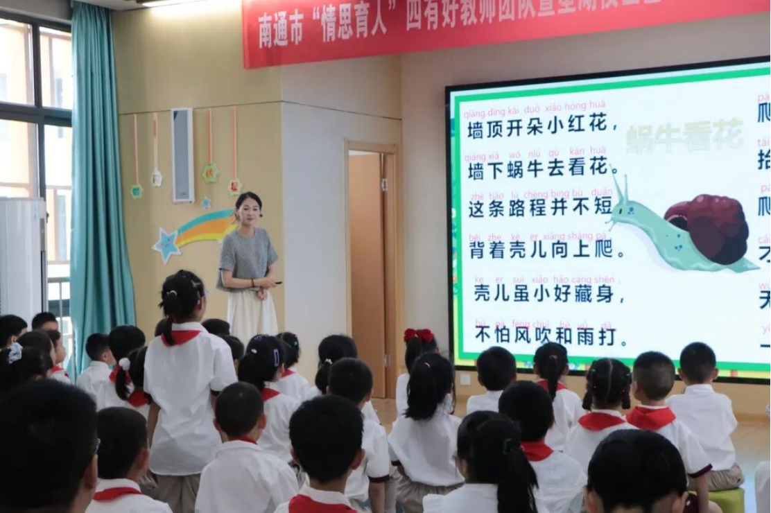 流萤染夏,栀子微香。 为进一步提升教师的课程实施能力,夯实教师专业素养和教育水平,更好地促进教师团队专业化成长,6月13日,南通市“情思育人”四有好教师团队暨星湖校区基于场馆建设的具身课堂教学研讨会如约而至,恰逢山西省阳泉市教研员教研管理与专业素养提升研修班50余人来校交流。