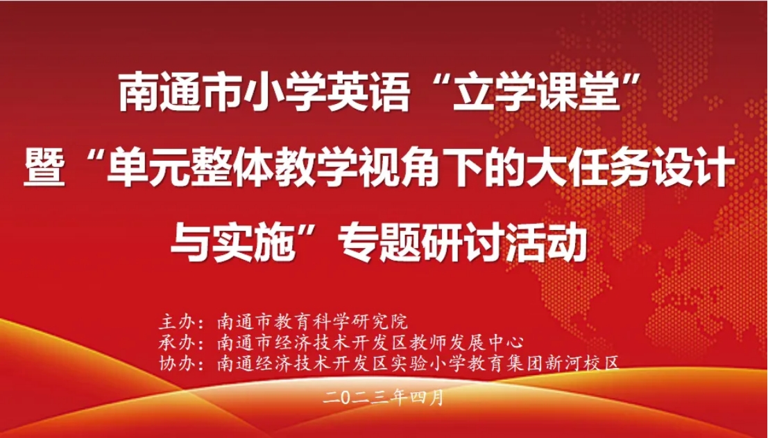 走进四月芳菲正好的新河校园,是英语课堂与立学教研交相碰撞的书香音韵。为进一步探究《义务教育英语课程标准》理念,推进“立学课堂”教学实践,优化小学英语单元整体教学,南通市“立学课堂”暨“单元整体教学视角下的大任务设计与实施”专题研讨活动4月26至27日在开发区实验小学教育集团新河校区举行。
