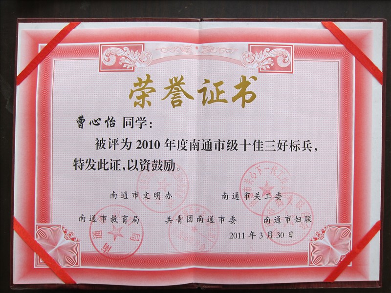 活动的开展,促进学生在思想、学习、身体上都有不同程度的进步。在此基础上,经过校、区、市层层推选,我校初三(5)班曹心怡同学被评为南通市十佳三好标兵,在15日的颁奖典礼结束后,曹心怡同学作为十佳三号标兵代表接受了通州电视台的采访。