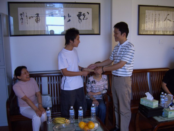 9月6日上午,开发区检察院办公室主任李鸣、张达伟、黄辉一行,来我校资助初三特困生,图片如下: