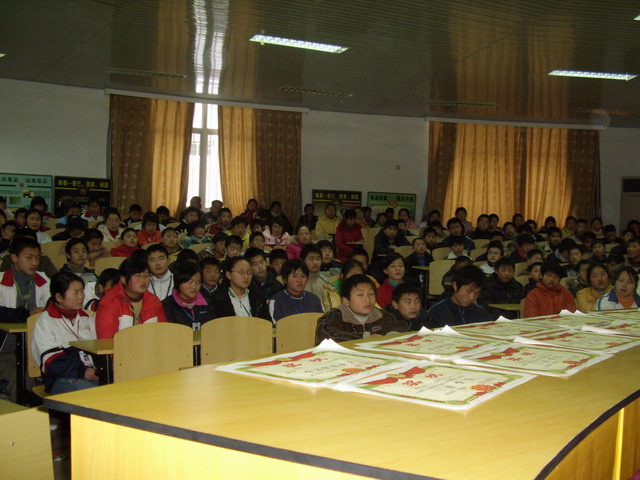 2月27日下午,在我校阶梯教室召开初一年级部分班级集体班会,表彰了2005-2006学年度第一学期荣获“三好学生”、“学习积极分子”等学生,并发放了奖状,最后学校领导唐进华书记作了重要讲话,鼓励学生积极进取,奋发向上,为塑造美好人生打好基础。部分图片如下: |