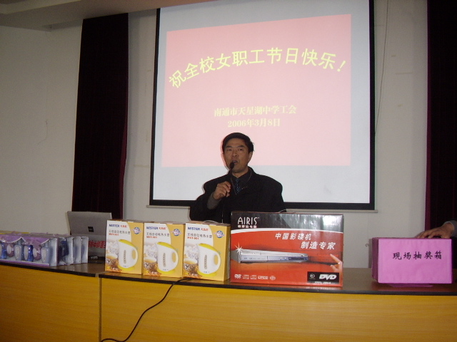 3月8日,我校工会组织了“三.八”妇女节系列庆祝活动,下图为在我校阶梯教室举行r的抽奖活动: