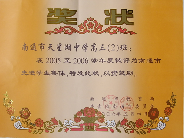 高三(1)班羌晨晨同学被省教育厅授予“江苏省三好学生”称号;