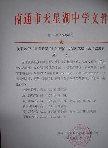 为了认真落实素质教育,营造美好校园文化,提高学生的文化艺术水平,丰富他们的艺术实践并给学生以充分展示个人才艺的舞台,校团委、学生会特组织了“青春有梦,我心飞扬”大型才艺展示活动。从预赛到决赛,历时三周,最后产生了最受欢迎等六个奖项。此次比赛,形式多样,唱歌、拉丁、相声、笛子独奏,这些正是我校扎实开展素质教育的体现。下面是部分学生决赛才艺展示的图片。